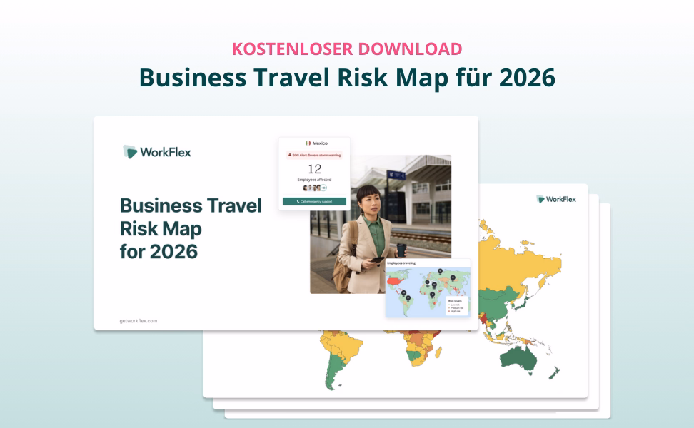 Kostenlose Business Travel Risk Map 2026 mit klaren Risikoeinstufungen für alle Reiseziele. Fundierte Entscheidungen für Mitarbeitersicherheit.