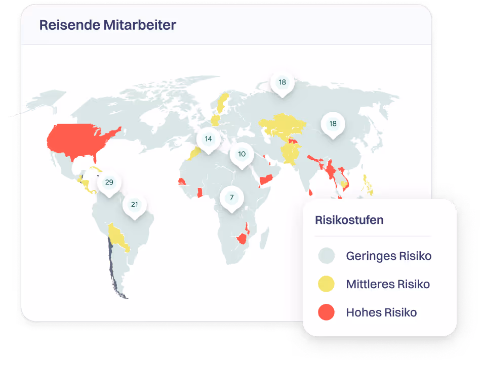 Schützen Sie Ihre Mitarbeitenden mit medizinischer Versorgung, 24/7-Krisensupport, Frühwarnsystemen und Echtzeit-Tracking